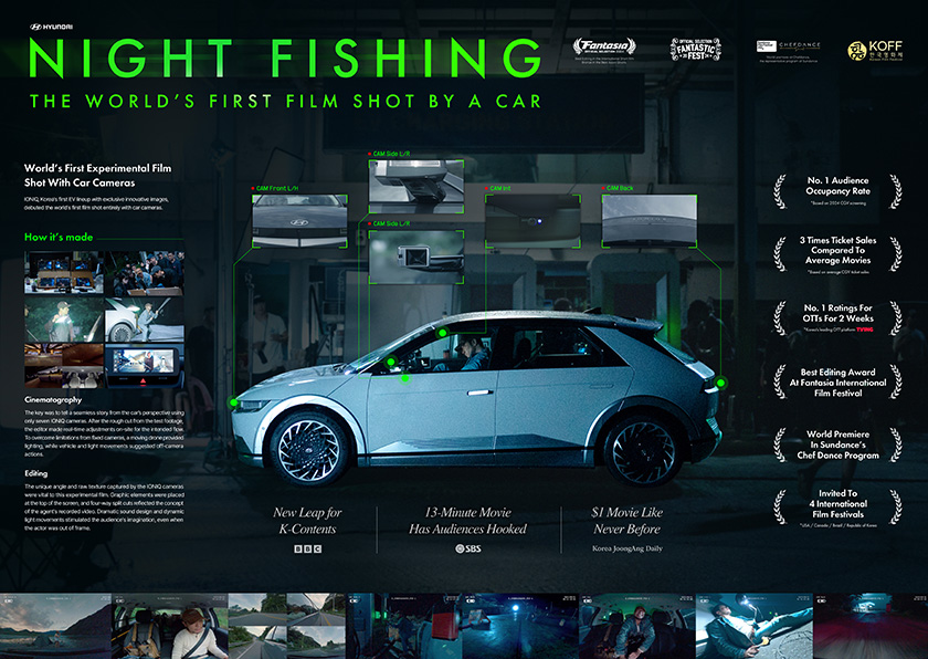 the entire process required innovative endeavors across various fields. Surprisingly, 'Night Fishing' never displays the IONIQ logo or a full shot of the vehicle. Nevertheless, the brand search rate among Gen Z has more than doubled. Additionally, IONIQ test drives have reached the highest numbers since the vehicle’s launch, making 'Night Fishing' more effective than any advertisement Hyundai has ever executed.